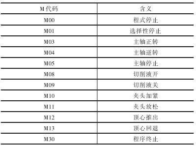 表2 常用M功能代碼及含義